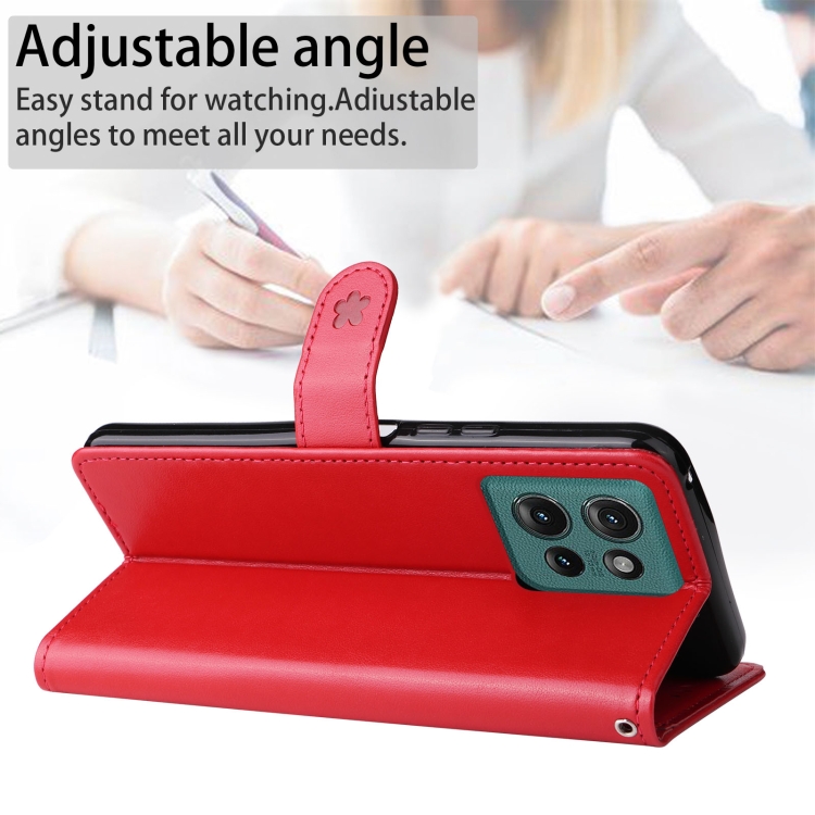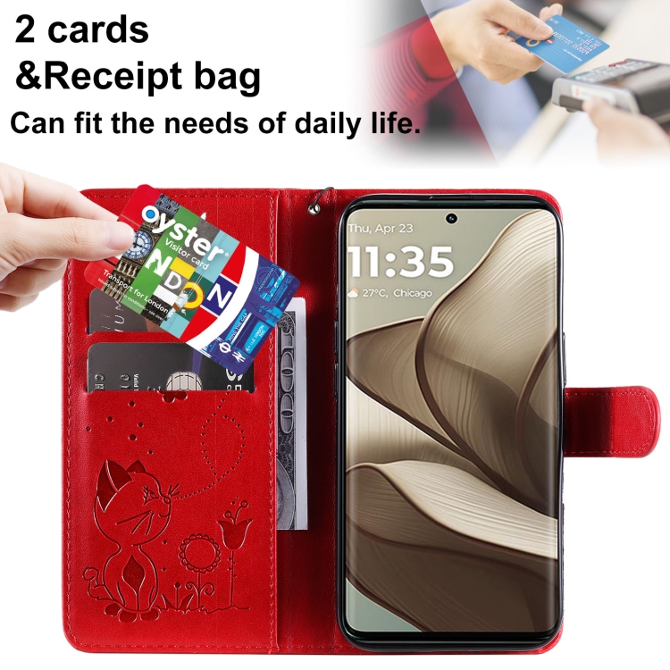 Funda de Cuero con Tapa para Motorola Edge 50 5G con Diseño de Gato y Abeja (Rojo)