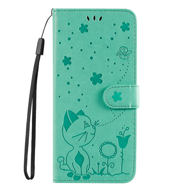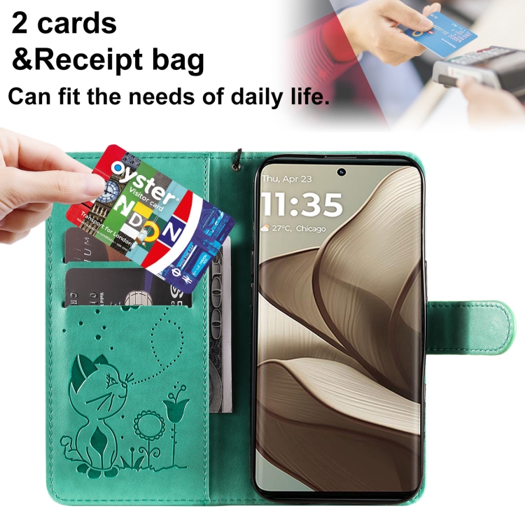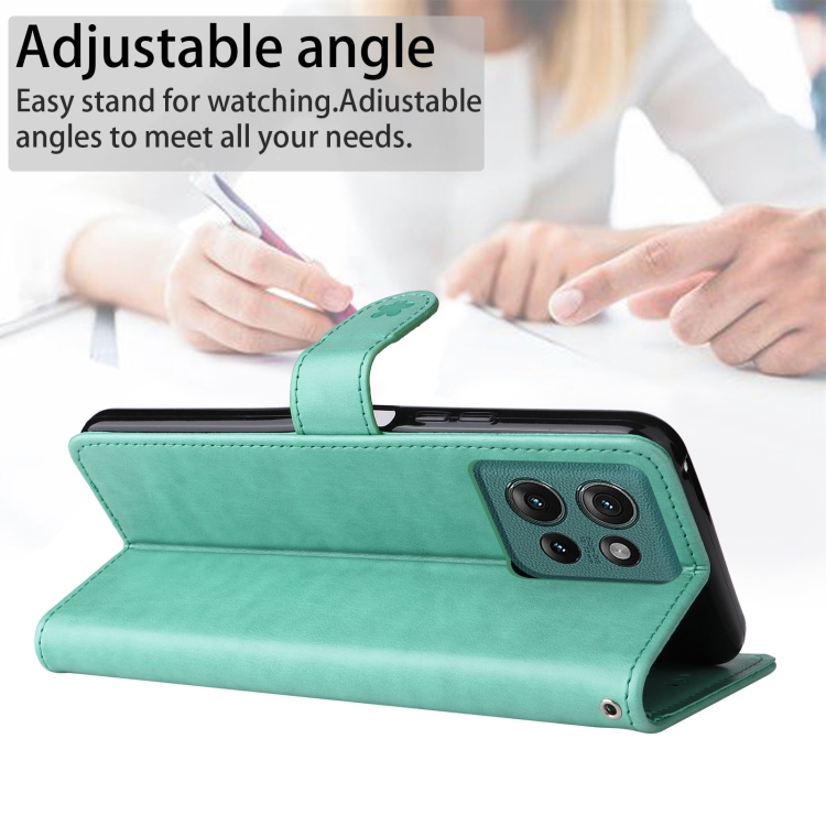 Funda de Cuero con Tapa Motorola Edge 50 5G Diseño Gato y Abeja (Verde)