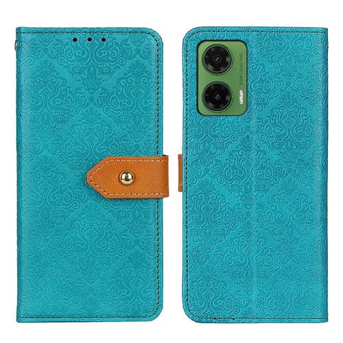Funda de Cuero con Tapa y Diseño Floral en Relieve para Motorola Moto G35 5G (Azul)