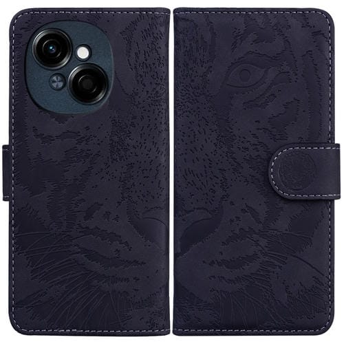 Funda de Cuero con Tapa para Tecno Spark Go 1 Pop 9 Pro con Estampado de Tigre (Negro)