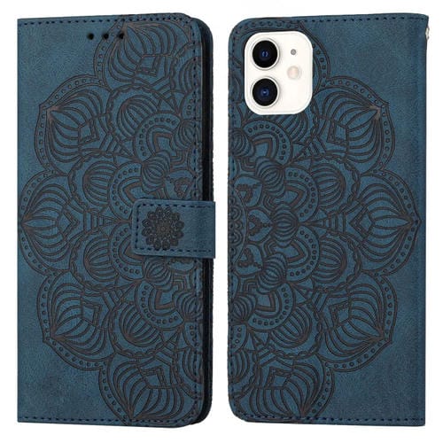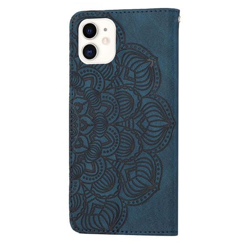 Funda de Cuero con Tapa en Relieve para iPhone 12 Mini Mandala (Azul)
