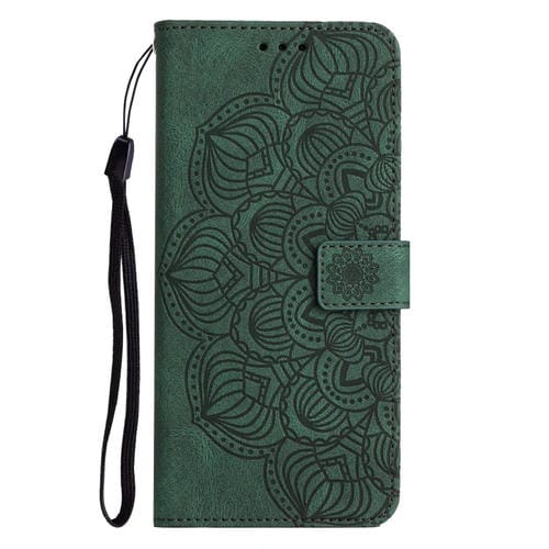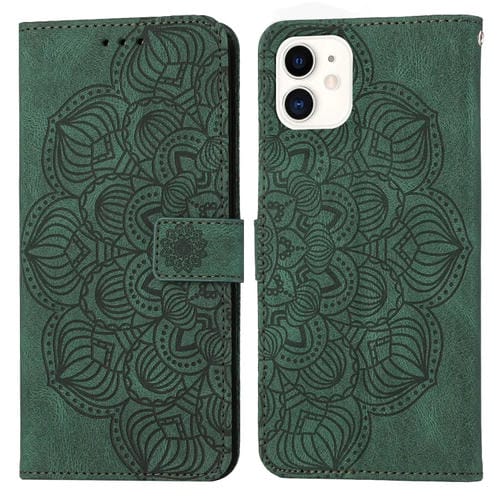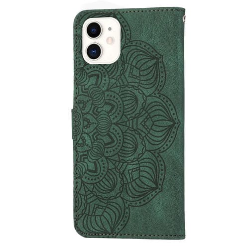 Funda de Cuero con Tapa en Relieve para iPhone 12 Mini Mandala (Verde)