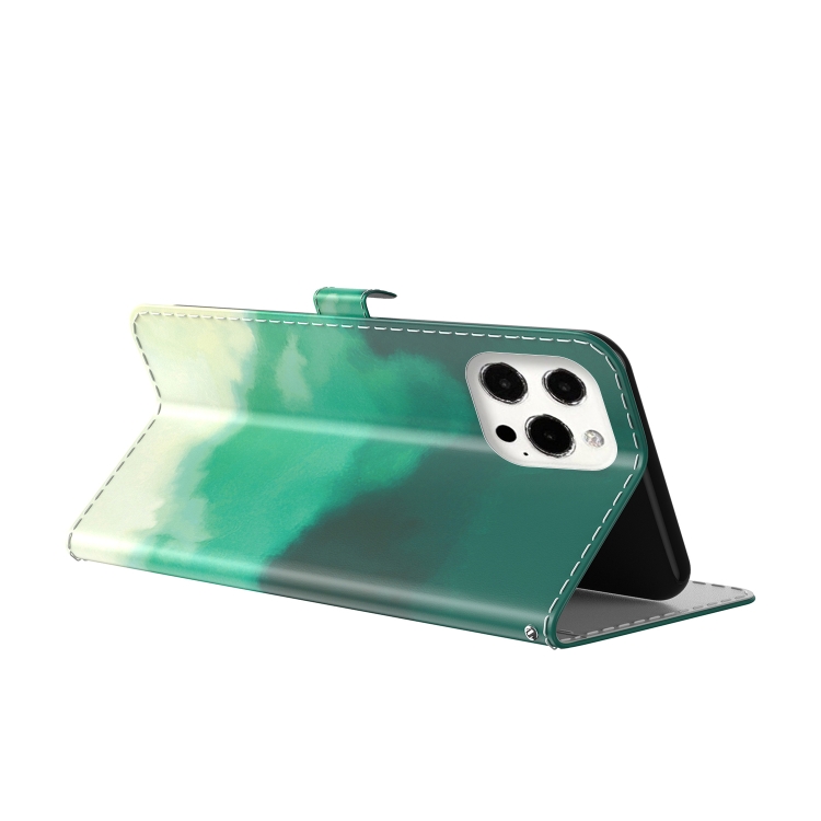 Funda de Cuero con Tapa Horizontal para iPhone 13 Pro con Soporte Ranura Tarjeta Billetera (Verde Cian)