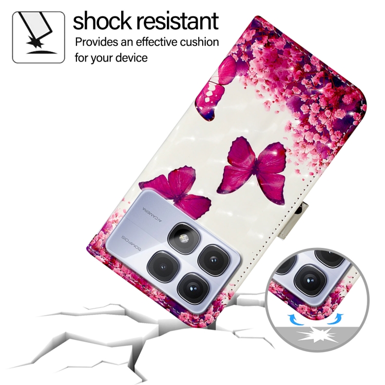 Funda de Cuero con Tapa Horizontal con Pintura 3D Global para Redmi K70 Ultra 5G (Mariposa Rosa)