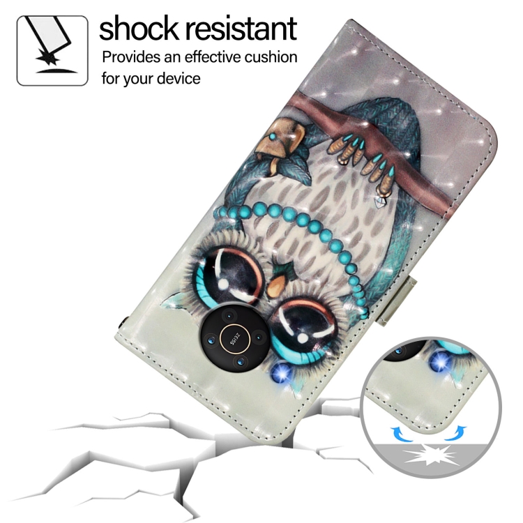 Funda de Cuero con Tapa Horizontal y Pintura 3D para Nokia X20/X10 (Búho Gris)