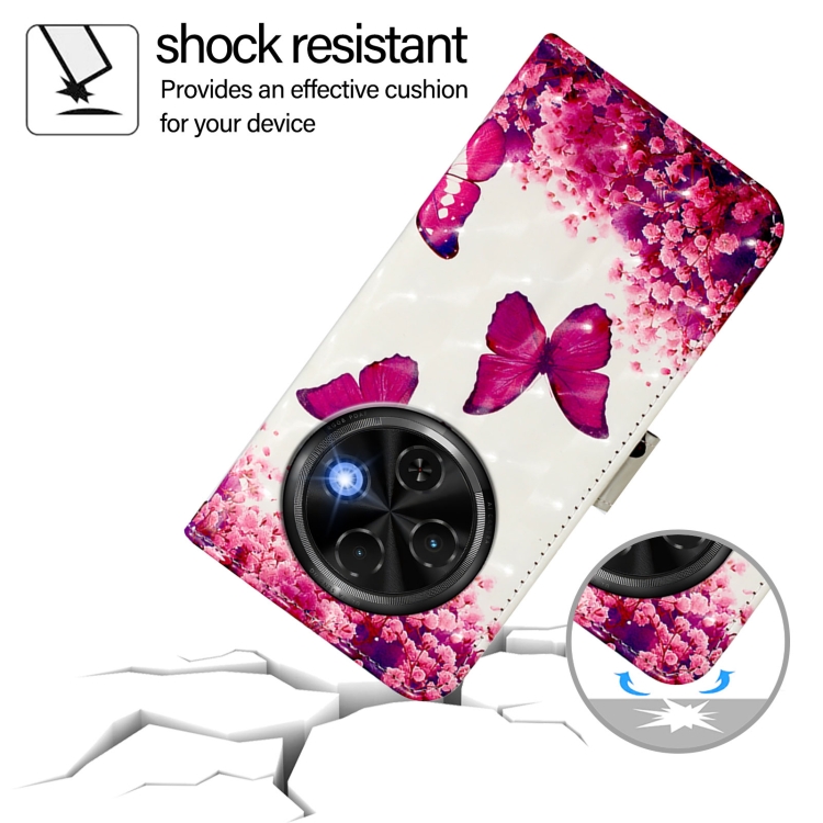 Funda de Cuero con Tapa Horizontal y Pintura 3D para Tecno Spark 30C (Mariposa Rosa)