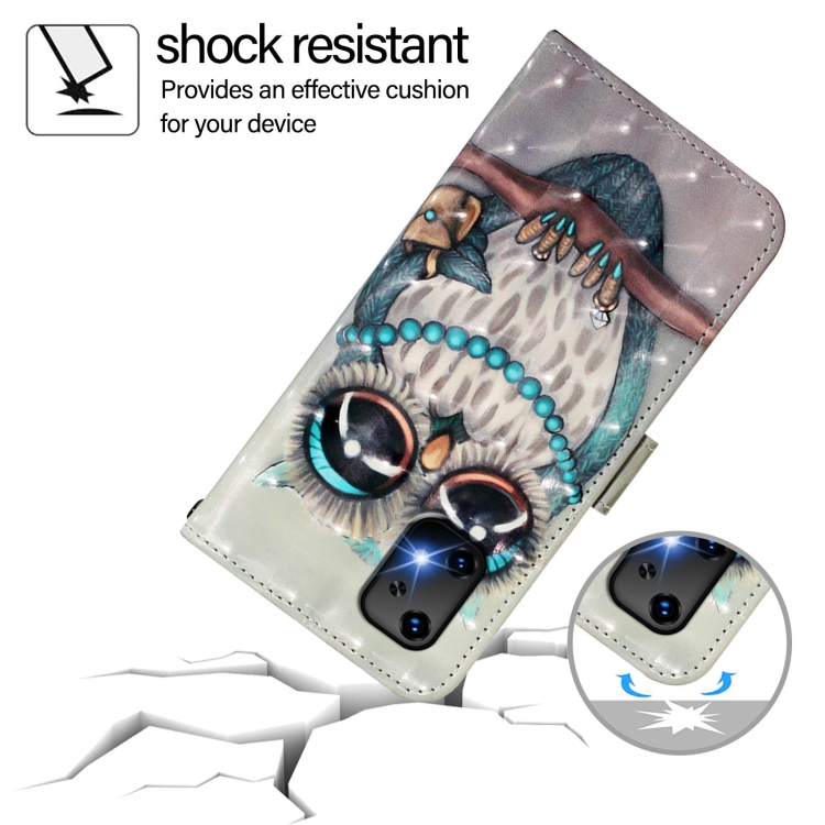 Funda de Cuero con Tapa Horizontal y Pintura 3D para Umidigi Bison X20 (Búho Gris)
