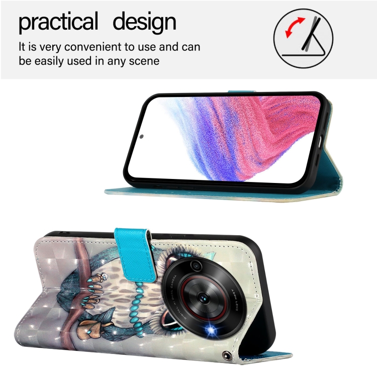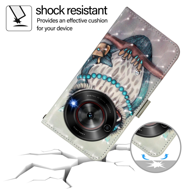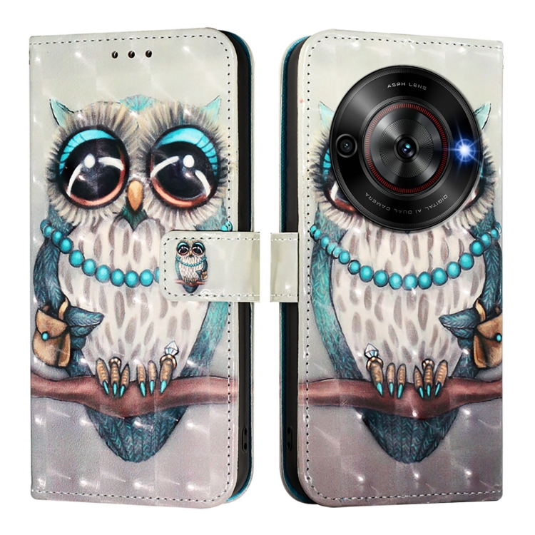 Funda de Cuero con Tapa Horizontal para ZTE Blade A75 5G y Nubia Focus con Pintura 3D (Búho Gris)