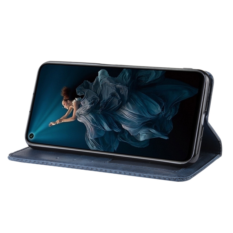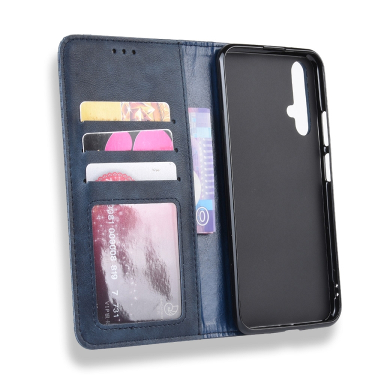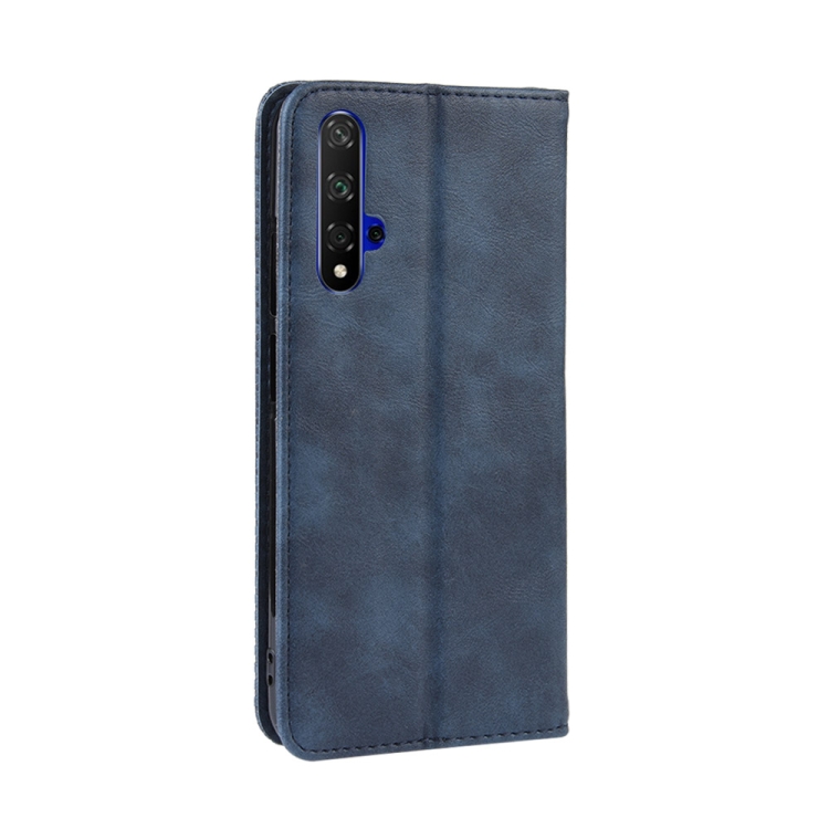 Funda de Cuero con Tapa Horizontal y Hebilla Magnética para Huawei Honor 20 con Soporte y Ranuras (Azul)