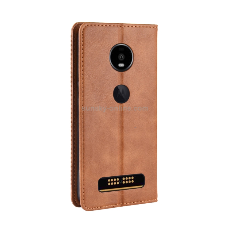 Funda de Cuero con Tapa Horizontal para Moto Z4 Play con Hebilla Magnética, Soporte y Ranuras para Tarjetas (Marrón)