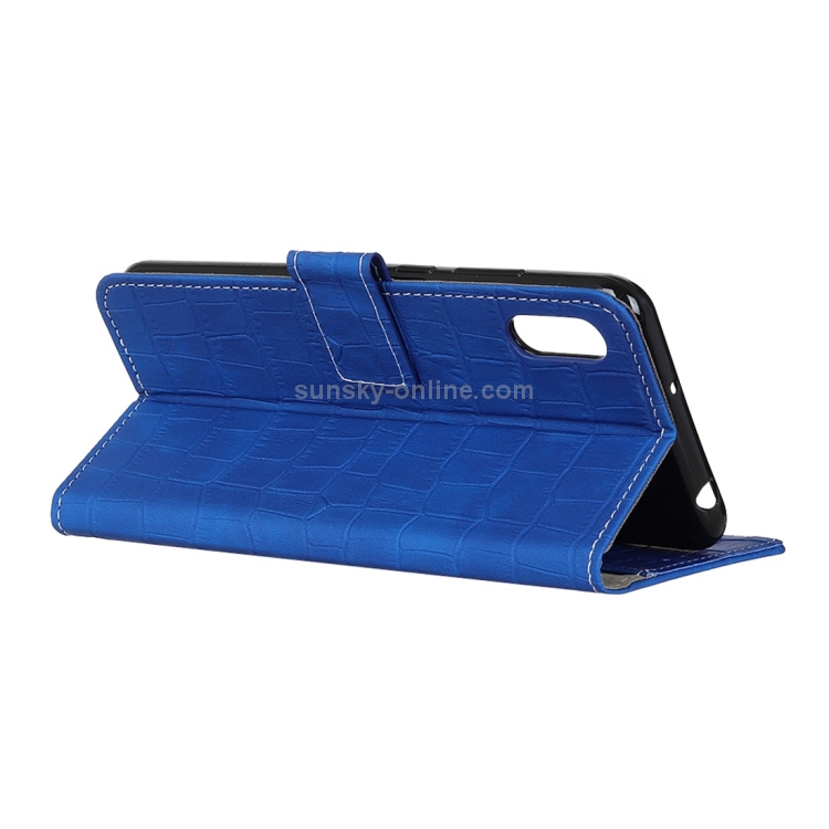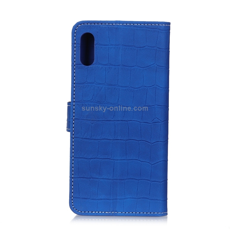 Funda de Cuero con Tapa Horizontal Textura Cocodrilo para iPhone Xr con Soporte Billetera Ranuras y Marco de Fotos (Azul)