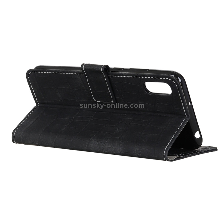 Funda de Cuero iPhone Xr Tapa Horizontal Textura Cocodrilo Soporte Billetera Ranuras Marco Fotos (Negro)