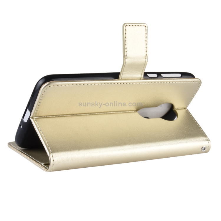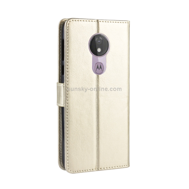 Funda de Cuero con Tapa Horizontal Crazy Horse Texture para Motorola Moto G7 Power (EEUU) con Soporte y Billetera (Dorado)