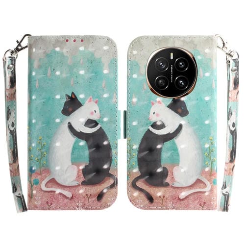Funda de Cuero con Tapa Horizontal para Honor Magic7 (Gato Blanco y Negro)