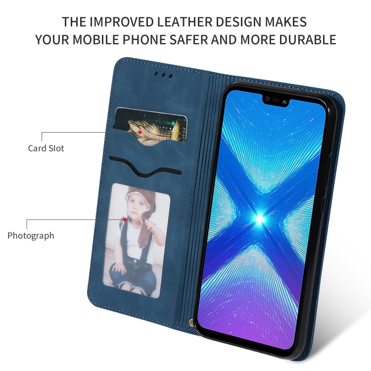 Funda de Cuero con Tapa Horizontal Magnética Retro Skin Feel Business para Huawei Honor 8X (Azul Marino)