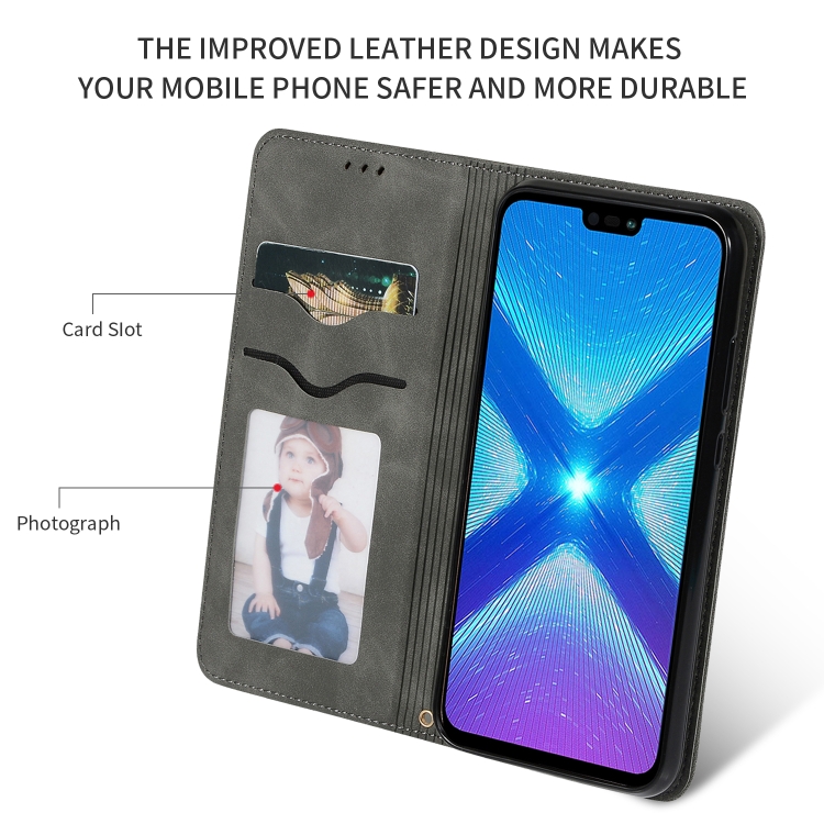 Funda de Cuero con Tapa Horizontal Magnética Retro Skin Feel Business para Huawei Honor 8X (Gris Oscuro)