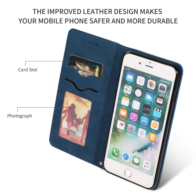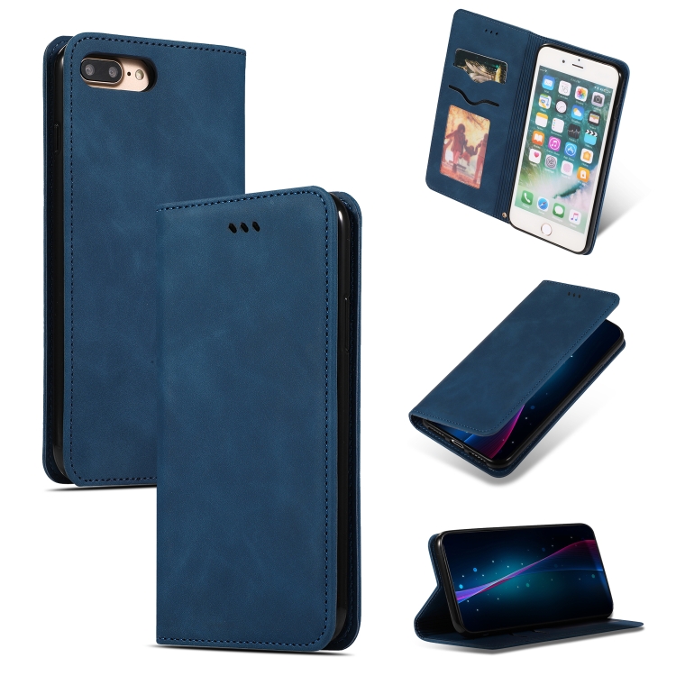 Funda de Cuero para iPhone 8 Plus / 7 Plus con Tapa Horizontal Magnética Retro Skin Feel Business (Azul Marino)