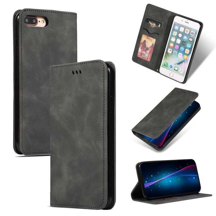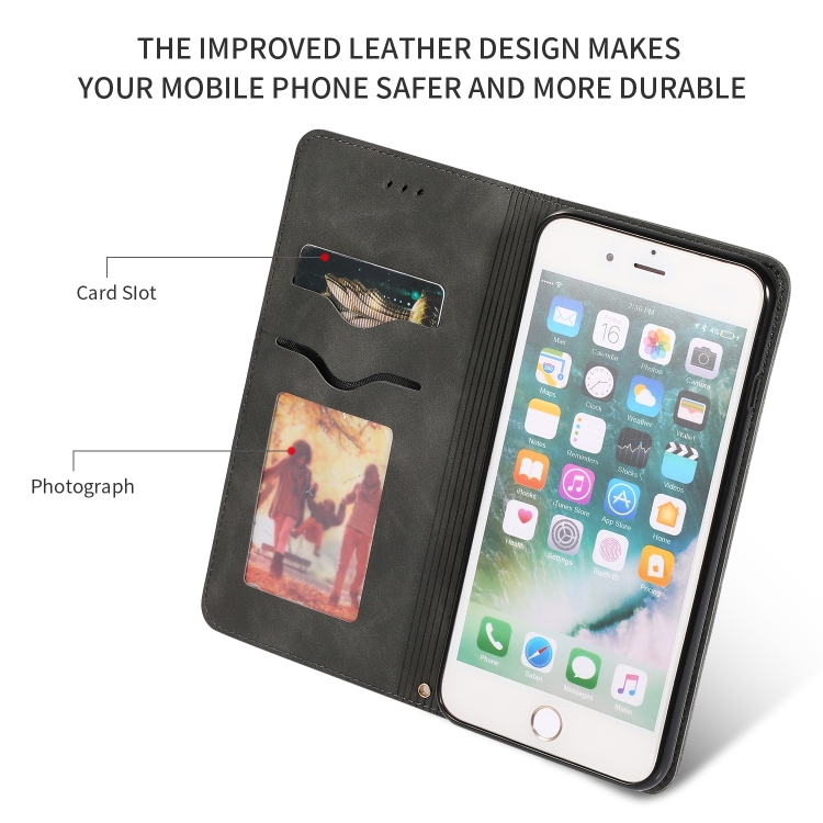 Funda de Cuero con Tapa Horizontal Magnética Retro Skin Feel Business para iPhone 8 Plus / 7 Plus (Gris Oscuro)