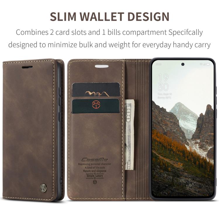 Funda de Cuero con Tapa Horizontal Multifuncional para Oppo Reno13 Global Caseme 013 (Café)