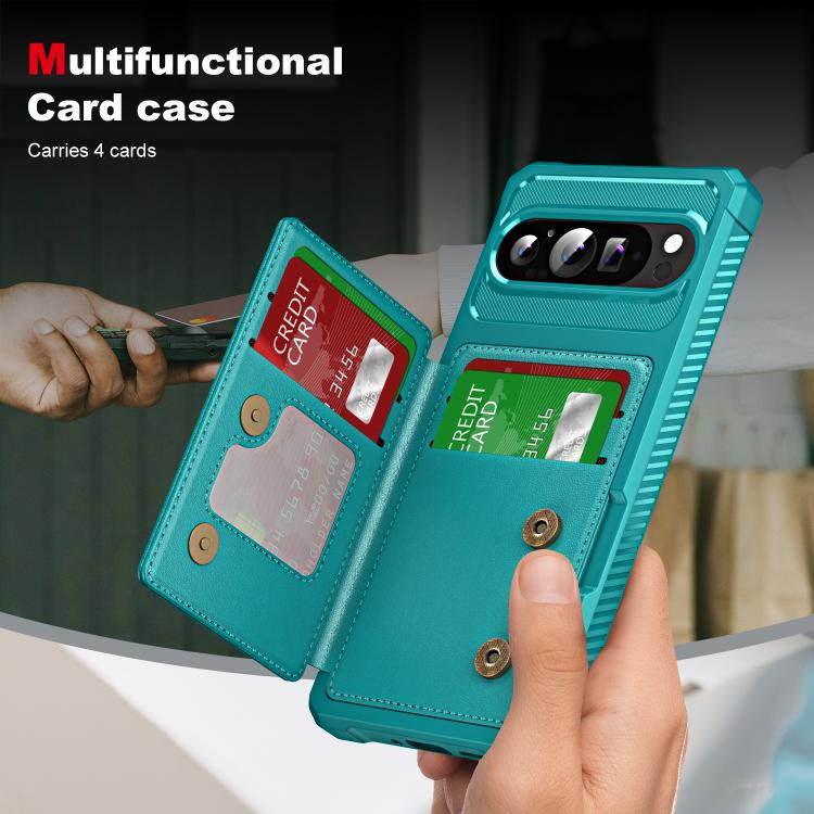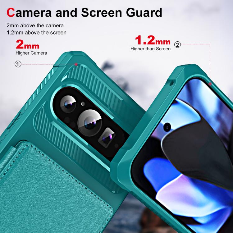 Funda de Cuero con Tapa Horizontal para Google Pixel 9 Pro XL (Verde Cian)