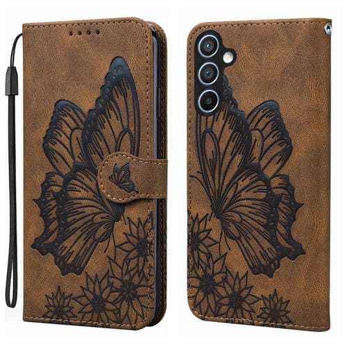 Funda Cuero con Tapa Horizontal Samsung Galaxy A36 5G Diseño Retro Estampado Mariposas (Marrón)