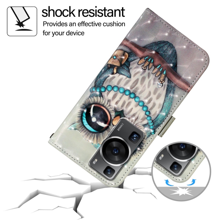 Funda de Cuero con Tapa Horizontal y Pintura 3D para Huawei P60 Pro (Búho Gris)