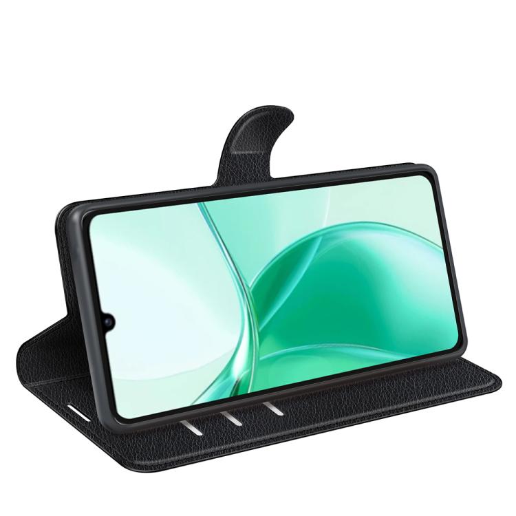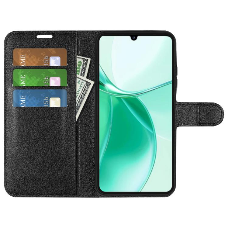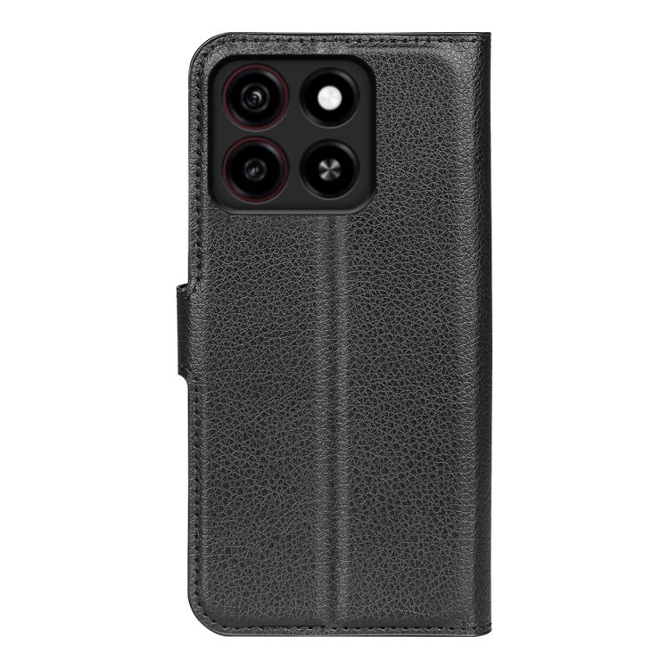 Funda de Cuero para ZTE Blade A35 con Tapa Horizontal y Textura de Lichi (Negro)