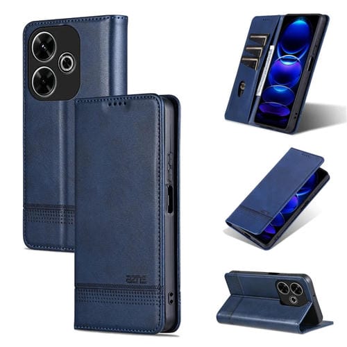 Funda de Cuero con Tapa Magnética con Textura de Becerro Azns para Xiaomi Redmi 13 4G Global (Azul Oscuro)