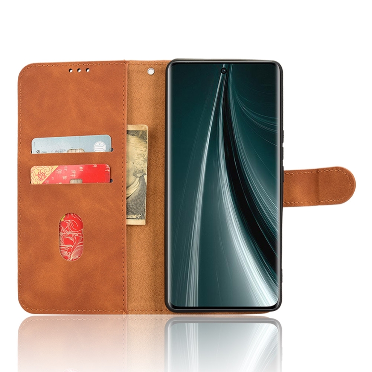 Funda de Cuero con Tapa Magnética para Teléfono Vivo T3 Pro 5G con Tacto de Piel de la India (Marrón)