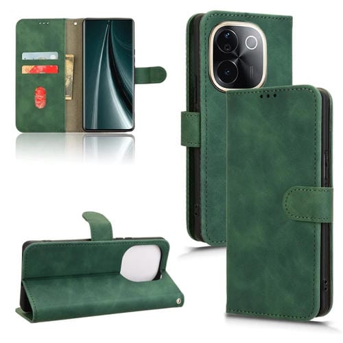 Funda de Cuero con Tapa Magnética para Teléfono Vivo T3 Pro 5G con Tacto de Piel de la India (Verde)