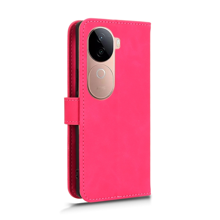 Funda de Cuero con Tapa Magnética para Teléfono Vivo V40E 5G India / Iqoo Z9S 5G Skin Feel (Rosa Rojo)