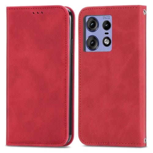 Funda de Cuero con Tapa Magnética para Motorola Edge 50 (Rojo)