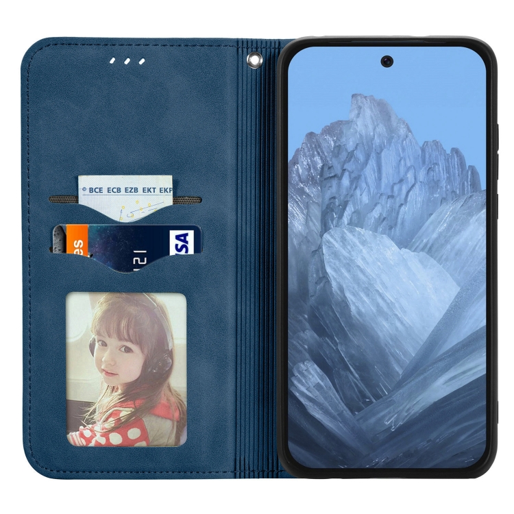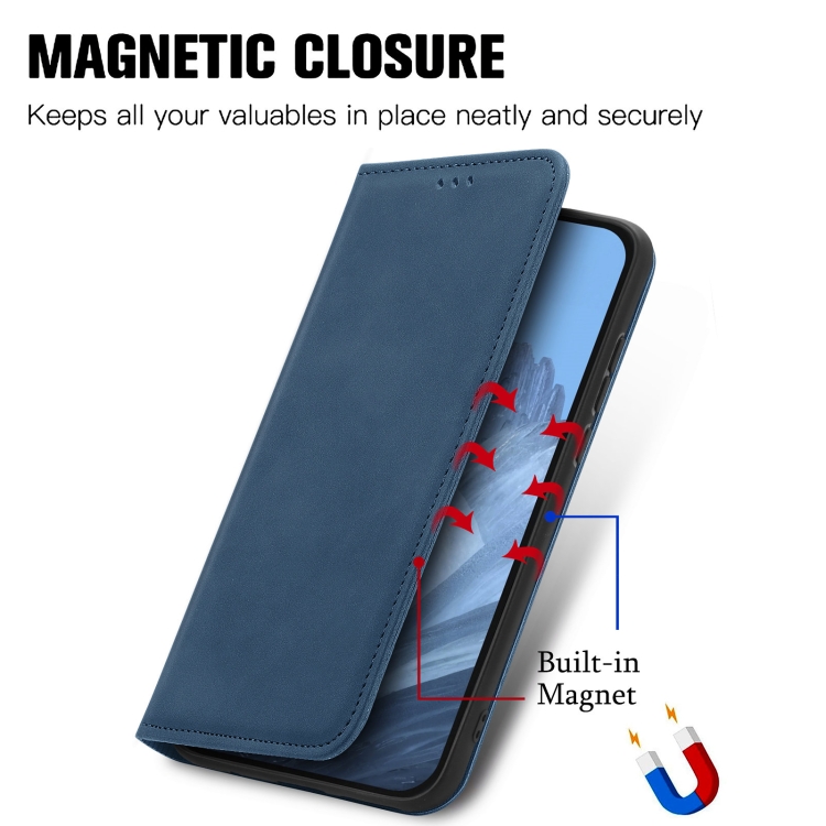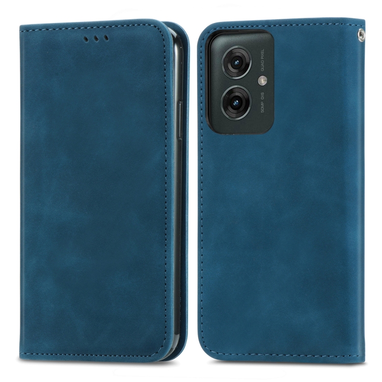 Funda de Cuero con Tapa Magnética y Tacto Retro para Motorola Moto G55 (Azul)