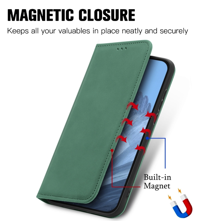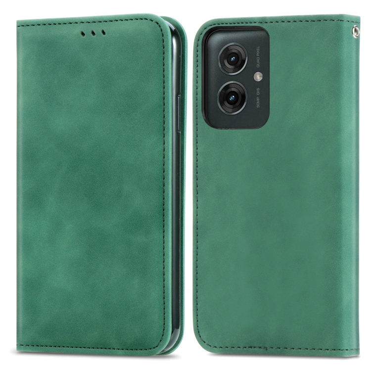 Funda de Cuero con Tapa Magnética y Tacto Retro para Motorola Moto G55 (Verde)