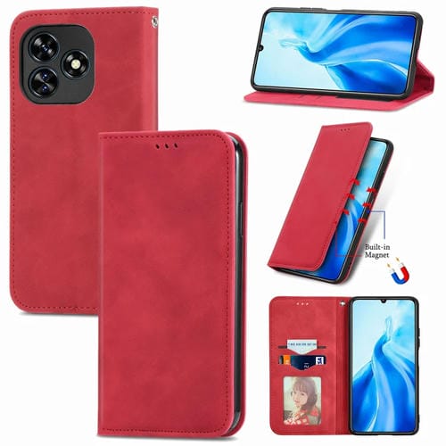 Funda de Cuero con Tapa Magnética para Oukitel C51 (Rojo)