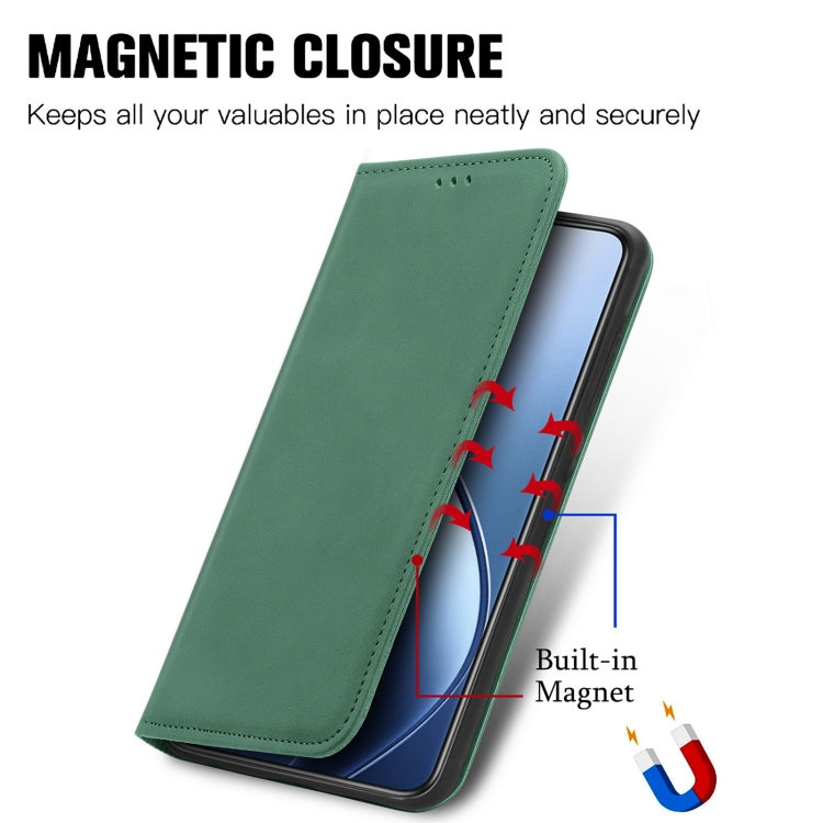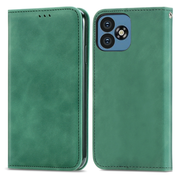 Funda de Cuero con Tapa Magnética y Tacto Retro para Oukitel C53 (Verde)