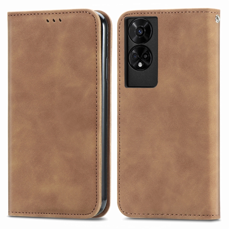 Funda de Cuero con Tapa Magnética para TCL 50 5G (Marrón)