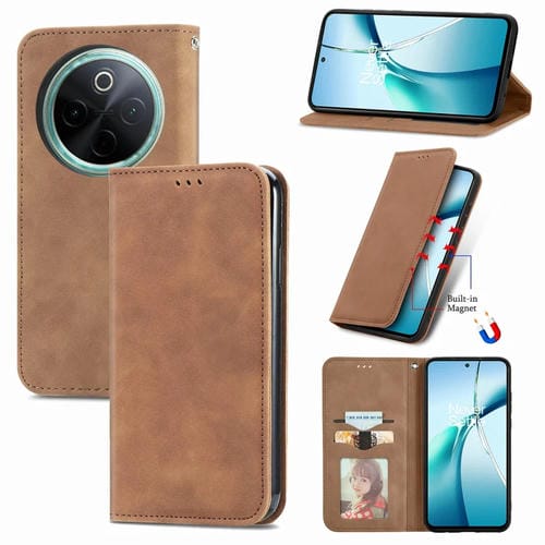 Funda de Cuero con Tapa Magnética y Tacto Retro para Vivo Y300 Pro (Marrón)