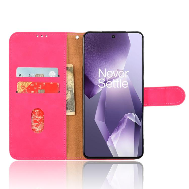 Funda de Cuero con Tapa Magnética para OnePlus Ace 5 y Ace 5 Pro (Rosa y Rojo)