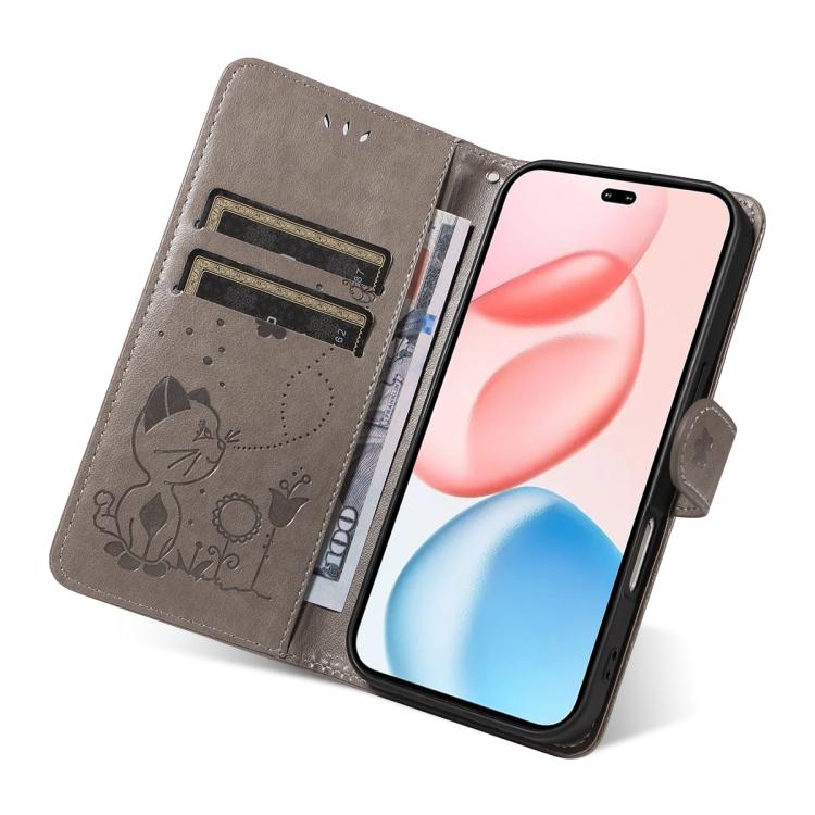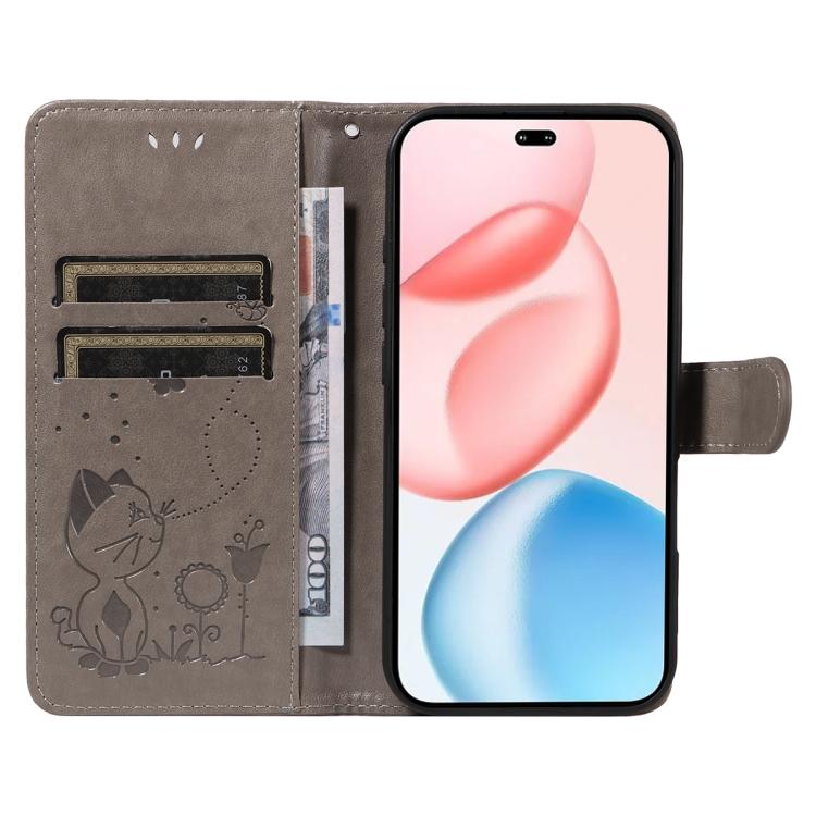 Funda de cuero con tapa para Honor 400 Pro Global (160,8 mm), diseño de gato y abeja (gris)