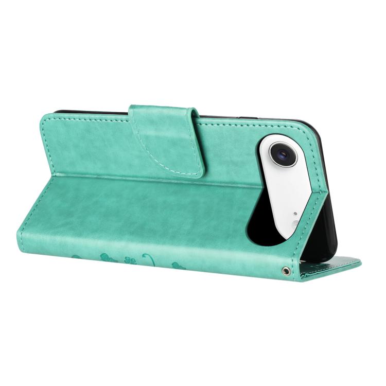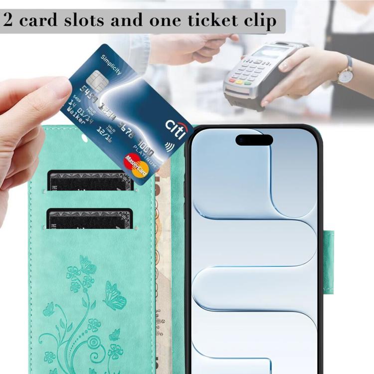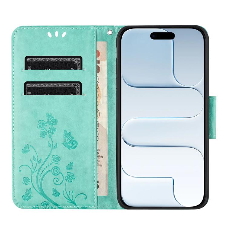 Funda de cuero con tapa para iPhone Air con diseño de mariposas y flores (verde)