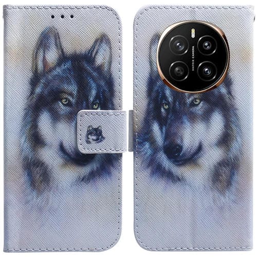 Funda de Cuero con Tapa para Honor Magic 7 con Dibujo a Color (Lobo Blanco)