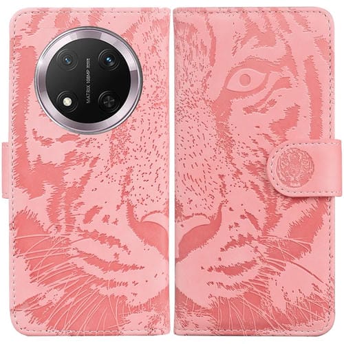Funda de Cuero con Tapa y Estampado de Tigre para Honor X9C (Rosa)