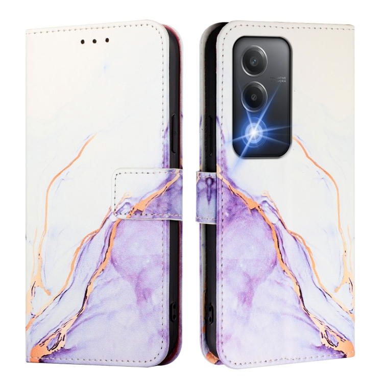 Funda de Cuero con Tapa para Teléfono Oppo A80 5G Versión UE Pt003 con Patrón de Mármol (Blanco y Morado)