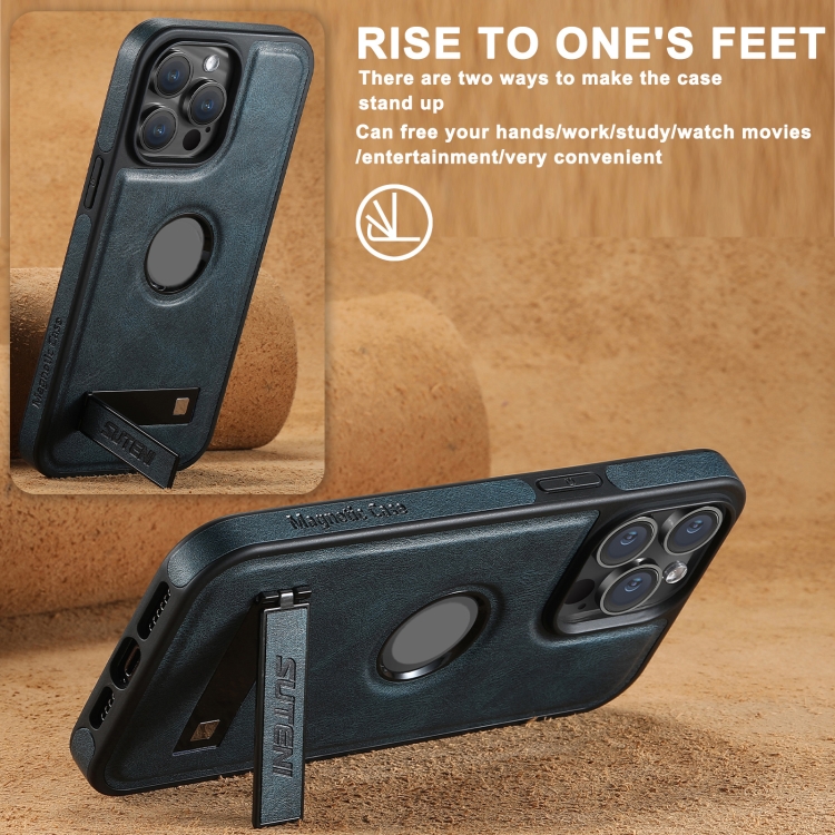 Funda de Cuero Suteni G2 para iPhone 16 Pro con Tapa Trasera y Soporte Magsafe (Negro)