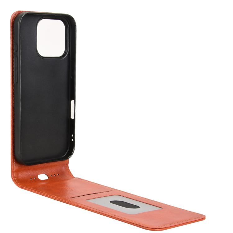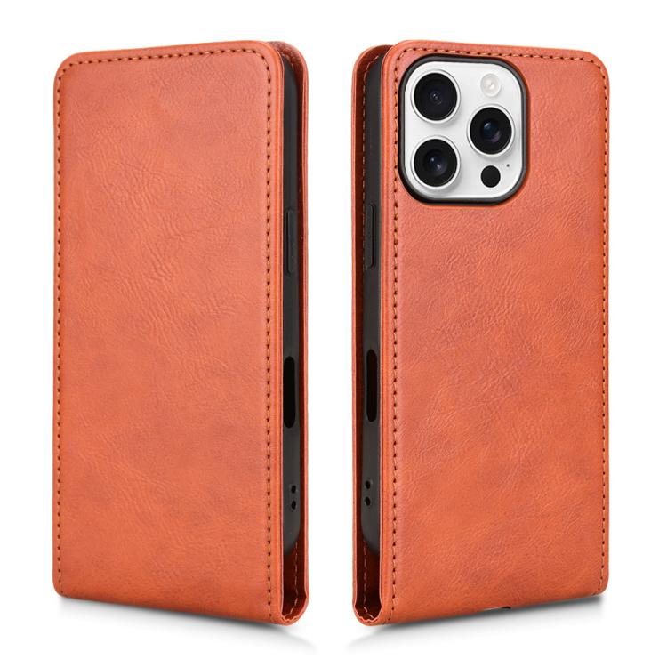 Funda de Cuero con Tapa Vertical Magnética para iPhone 16 Pro Max (Marrón)
