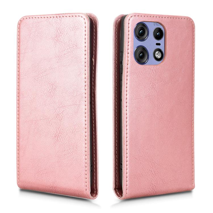 Funda de Cuero con Tapa Vertical Magnética para Motorola Edge 50 Pro 5G (Oro Rosa)