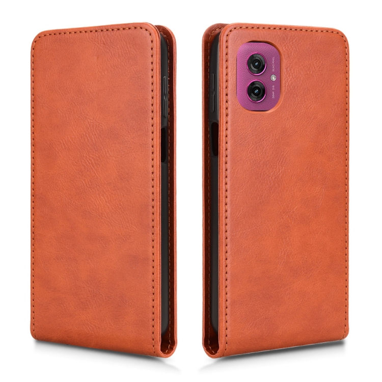 Funda de Cuero con Tapa Vertical Magnética para Motorola Moto G55 5G (Marrón)
