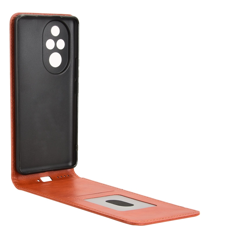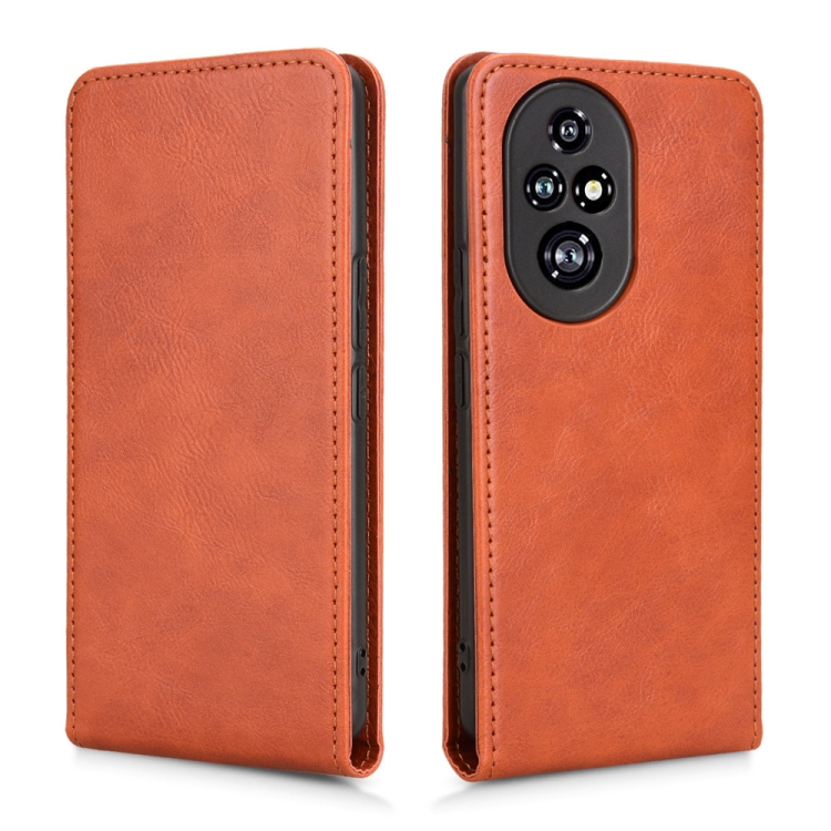 Funda de Cuero con Tapa Vertical Magnética para Honor 200 Pro 5G (Marrón)