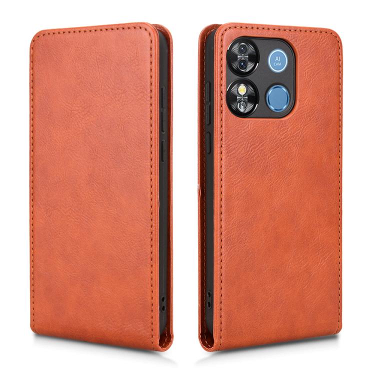 Funda de Cuero con Tapa Vertical Magnética para Teléfono Oukitel C57S (Marrón)